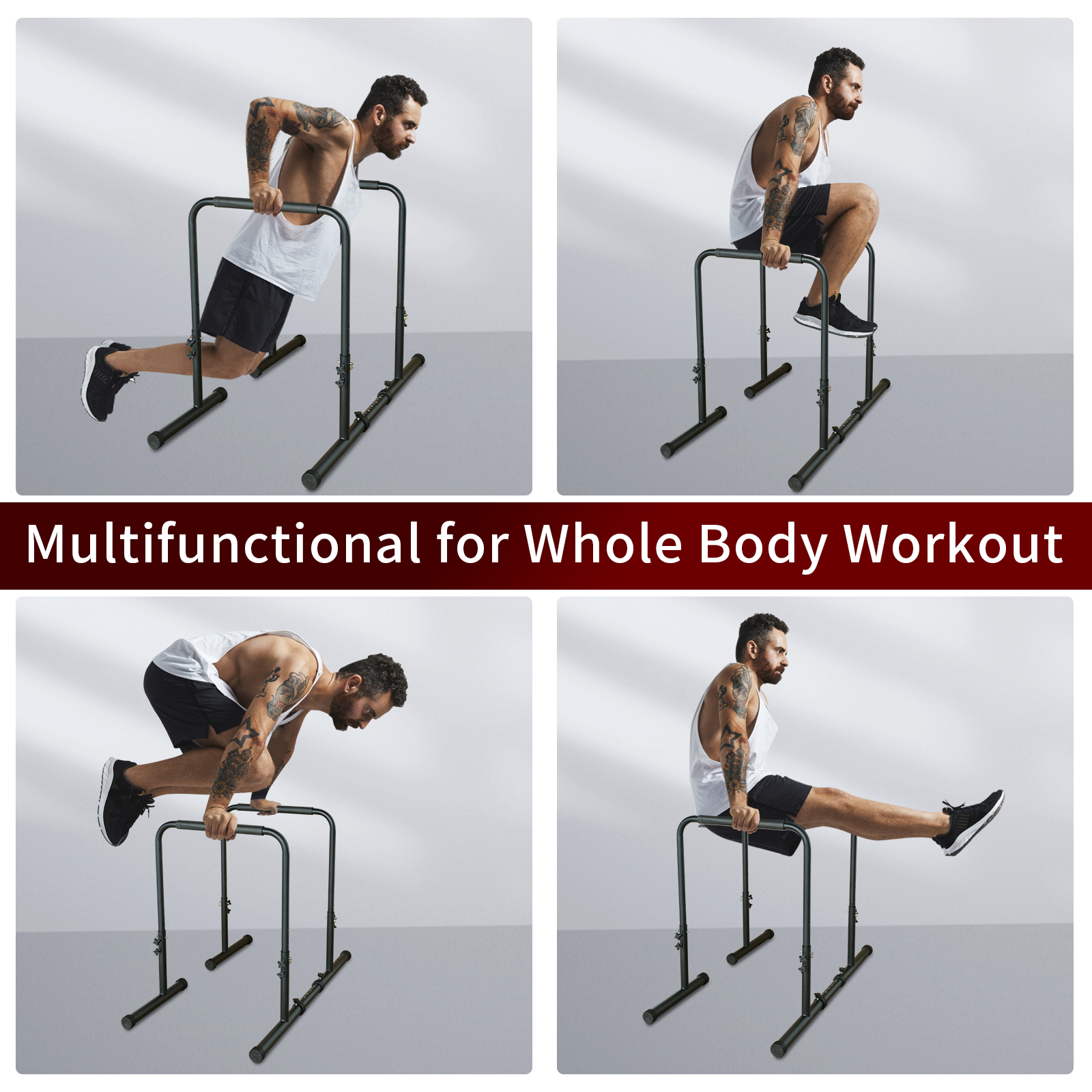 • 550 LBS Loading Capacity:The dip bars are constructed from high-density steel to provide long-term stability and easily support users up to 550 lbs, keeping you in better shape for longer workouts.